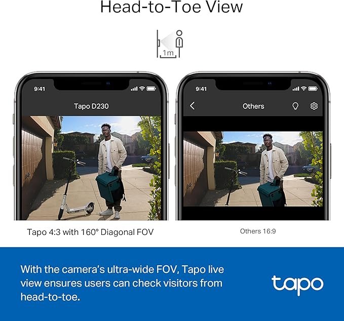 The Tapo Smart Wireless Video Doorbell delivers reliable home security with crystal-clear 3MP HD video and a 160° wide-angle lens, capturing every detail at your doorstep. Featuring real-time motion detection and two-way audio, it lets you see, hear, and speak to visitors from anywhere via your smartphone. Easy to install and fully wireless, this doorbell is the perfect upgrade for modern, connected homes — secure your entryway today.